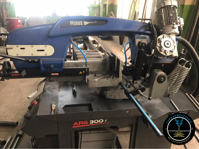 Розпил кругів та труб здійснюється за допомогою стрічкопильного верстату Pilous ARG 300 F. Розпил може здійснюватися під прямим кутом та під нахилом.